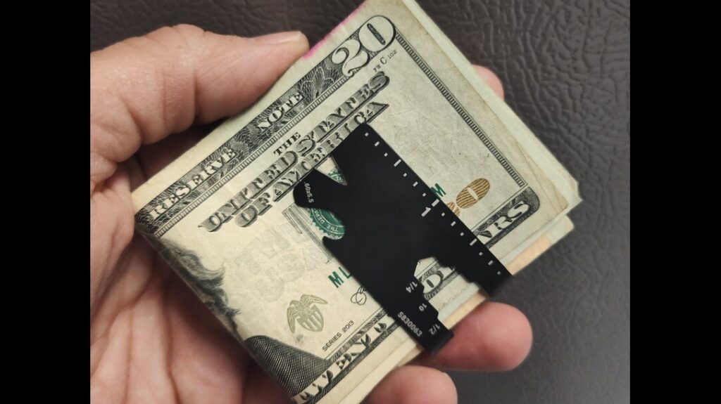 At first glance, the Multitool Money Clip appears like most ordinary money clips, but this is entirely incorrect. Upon closer investigation, this clip offered a staggering twelve integrated tools. A bottle opener, pry bar, nail pull, flat head driver, a hex bit, five metric wrenches, and a metric ruler were all incorporated into its 420J2 Steel body.