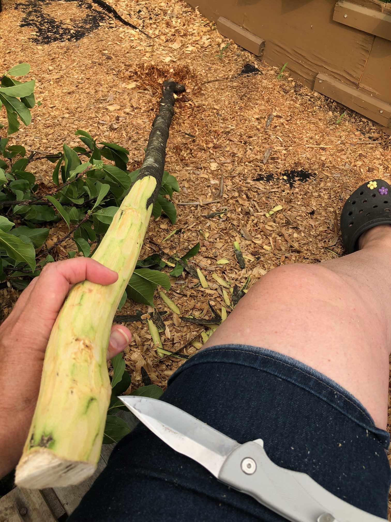 And so with that personal history, I found myself last weekend trimming out some overgrown landscaping when one of the branches called out to me that it was rather straight-ish and wouldn’t it make a nice garden stick?
