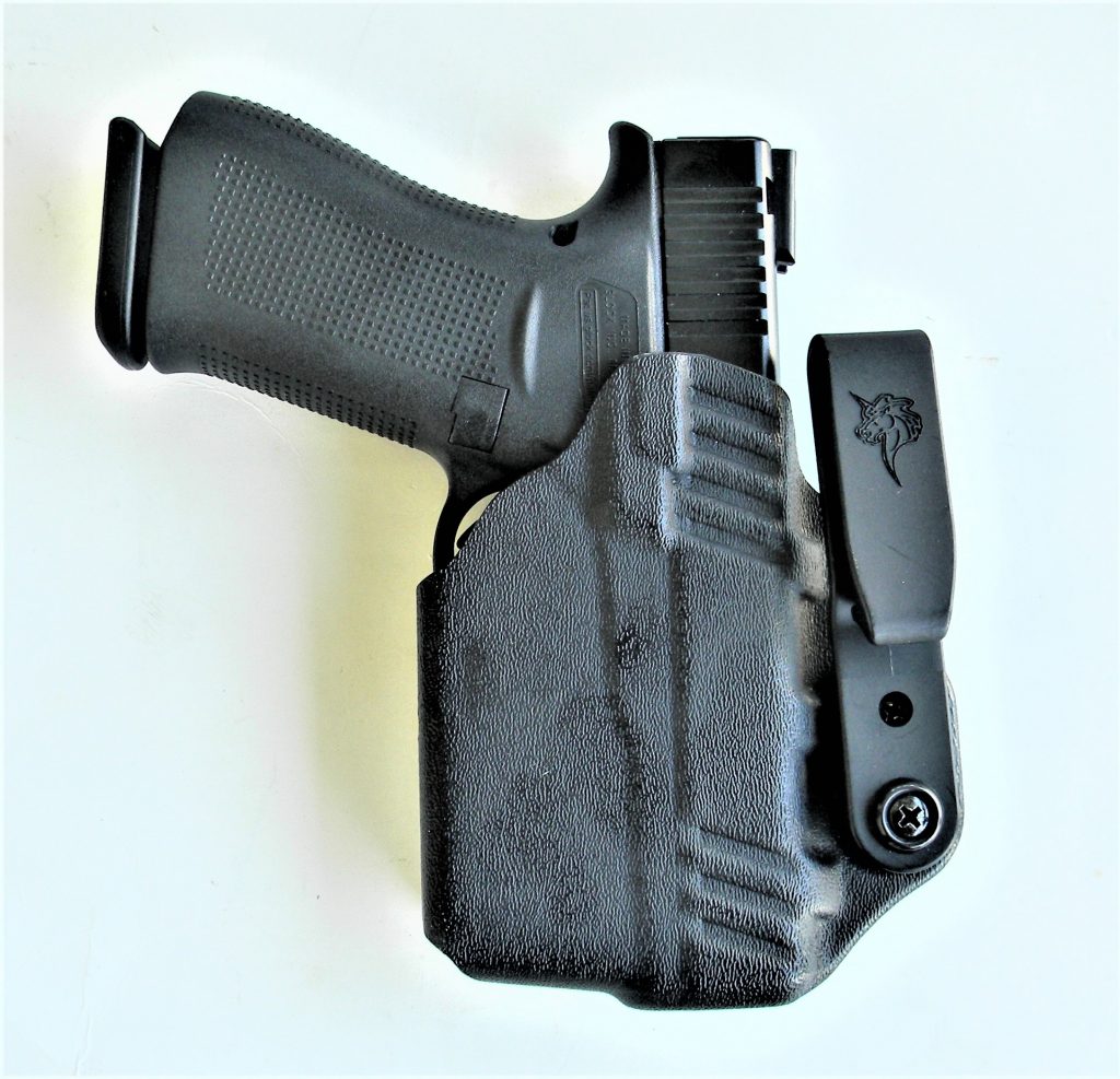There is a tensioned spring in the magazine well that holds the magazine catch and provides power for the magazine catch to return to position after pressing the magazine catch to release the magazine. A long hooked tool works well to move the spring aside. The spring is picked up and out of its notch in the magazine catch. Then you roll the catch out- or wriggle it out to one side. The Shield Arms magazine catch is aluminum rather than polymer. The fit is exact. The magazine catch easily fits into the Glock frame. Replacing the wire spring is simple enough however sometimes takes a bit of play to get the spring locked back in place. You may actually pull the wire spring out of place and later replace it. I think that with the small frame gun removing the spring is easiest. The new metal latch isn’t an extended type, all to the good when wearing a pistol concealed and close to the body. The Shield Arms magazine catch is well designed and positive in operation.
