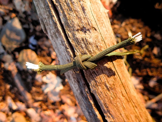 What It’s For: The jam knot tightly binds and cinches bundles, tarps, or gear. It slides under tension and then locks in place, holding firm until you release it. It’s possibly the most used bushcraft knot.