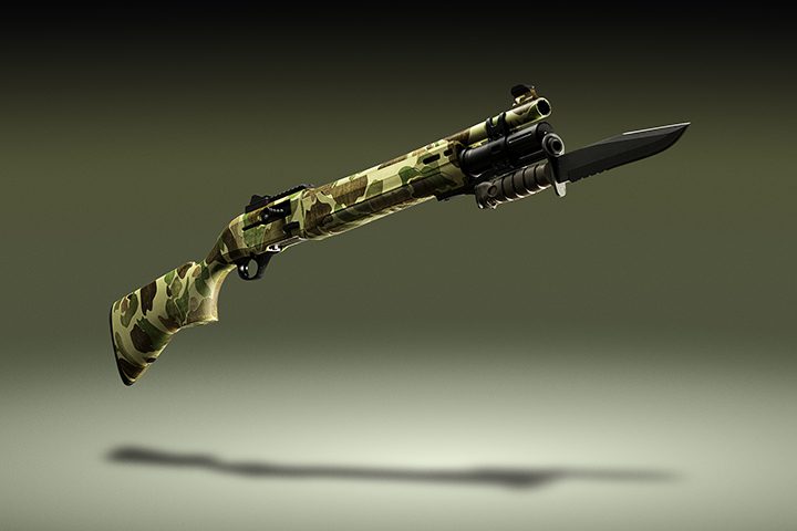 Outside of the fancy camouflage, the bayonet, and slick box, we have an A300 Ultima Patrol. The A300 Ultima Patrol is a gas-operated, semi-auto 12-gauge shotgun. It evolved from the standard A300, which was a sporting shotgun. Beretta gave it a tactical makeover and produced a sub-$1000, high-quality shotgun for the market that couldn’t afford the growing price of the 1301 series.