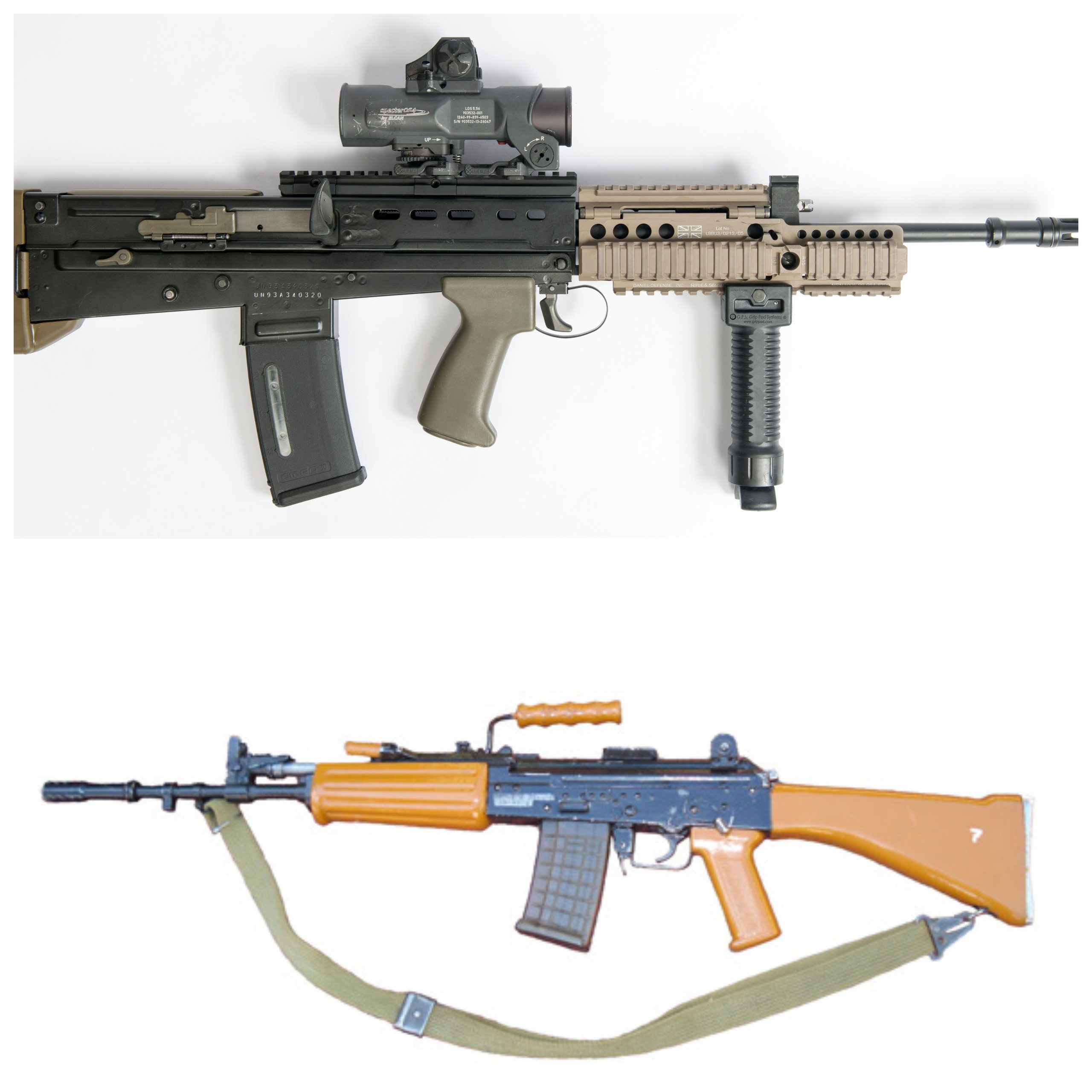 The L85’s first batch of magazines was so bad you could allegedly deform them by grasping them tightly. The INSAS magazines were polymer and reportedly cracked often. Both guns featured furniture that was poorly made and wobbly, often easily broken.