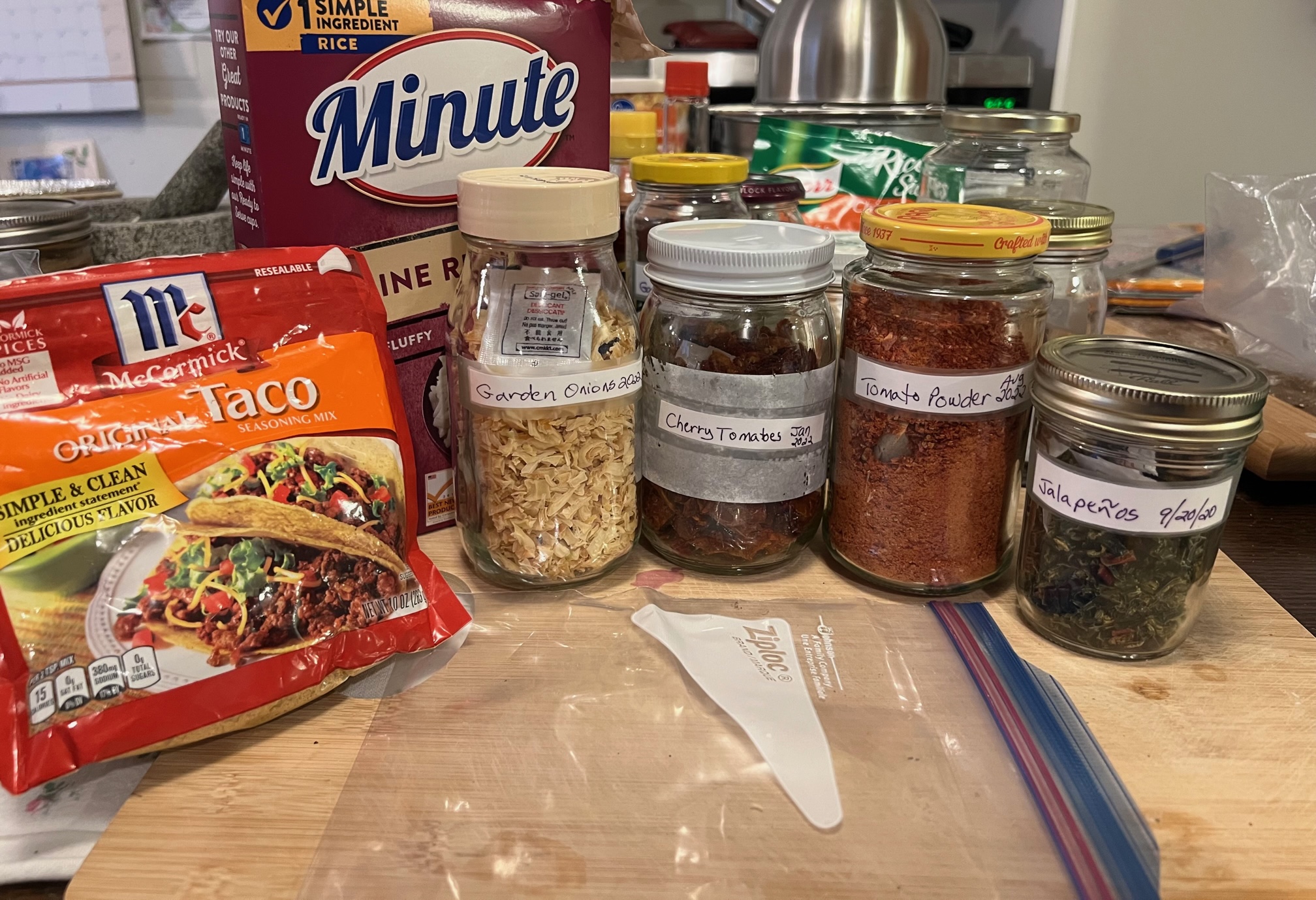 -Adding home dehydrated shredded or powdered veggies can boost the nutrition of that minute rice. Add a little extra water to take those into account.