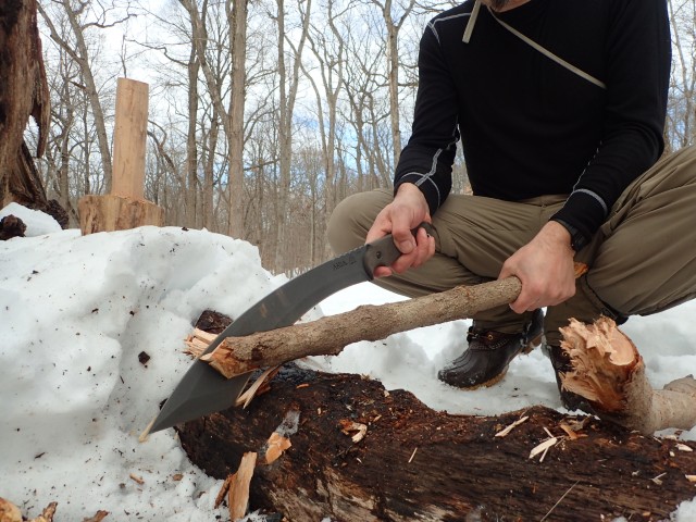 Winter also rewards simplicity. Gloves stay on, daylight fades fast, and every tool swap slows you down. A long blade handles splitting, carving, notching, and food prep without forcing you to dig through your kit. One tool keeps the firewood flowing and the camp chores moving.