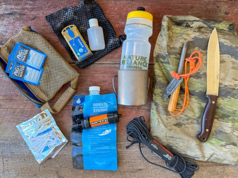 I do that because I’m an educator, not an intimidator. If people are cold, miserable, and exhausted, they don’t retain information. Comfort helps learning stick. In that class, I also provide all the training tools we need. Tarps, cordage, knives, water filters and purifiers, fire-starting gear, all of it is there so students can focus on learning rather than scrambling. Although I encourage people to bring whatever they consider survival gear. This is so they can get good feedback from our other extremely experienced instructors and me.