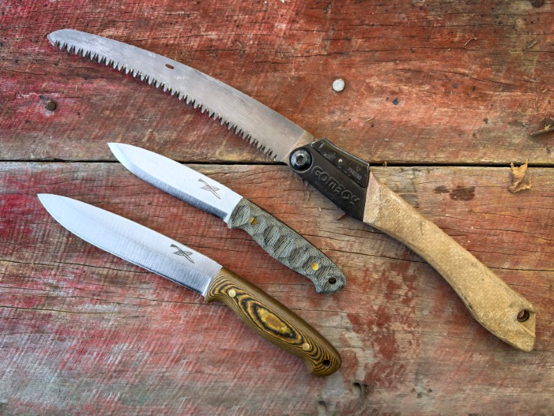 I follow that same idea today, just with modern tools. I’ll carry one of the knives I designed and had built by LT Wright, usually a Shemanese or one of the Companions. Then pair it with a larger cutting tool. That might be a small axe or a saw. Which one I bring really comes down to the work I expect to do.