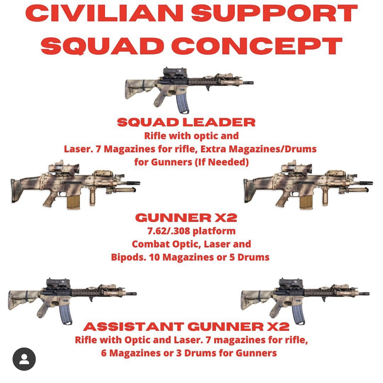 I had several discussions with support/logistic echelon soldiers about how CQB or close contact or any number of events would work and to these soldiers, just like this hypothetical civilian squad, I would advise.