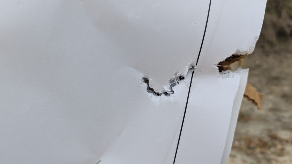 I saw a bit of horizontal stringing in each pattern. It was not enough to worry about, but it is interesting to see the pattern consistently horizontal. The #2 buckshot has a little stretch to it, but it is consistent, and that is a big advantage. Having a consistent pattern is just as important as having a tight pattern.