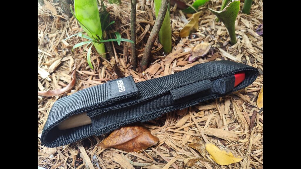The first few times I tried putting the saw into the sheath, I could swear it was the wrong size because it wouldn’t fit. However, because of its newness, the tight elastic side panels were not broken in. But after about a half-dozen times of inserting the saw and pulling it out, there were no issues. It held the saw firmly inside and released it just as easily.