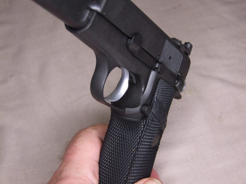 This is an early Mk ll Hi-Power; the diminutive front sight is part of the slide. Like all P35s the trigger is bad thanks to the magazine disconnect which I removed to reduce the trigger pull and creep.