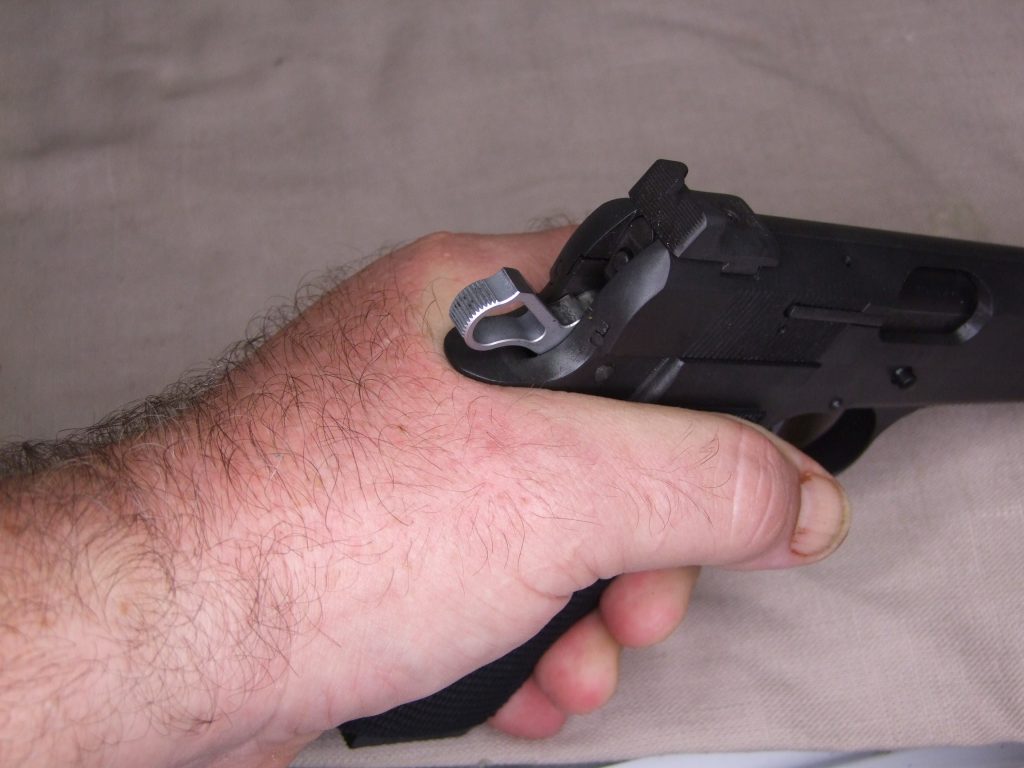 Having a nice trigger is useless if you cannot see the sights. I sent a set of Heinie Ledge with fiber optic front with the pistol. Lastly to ensure no more pain while shooting, KGB was going to fit a custom beavertail. Not only does it totally eliminate hammer bite, but it helps control recoil when you are shooting fast controlled pairs. To save your hand the pain, spend the $350.00; its money well spent.