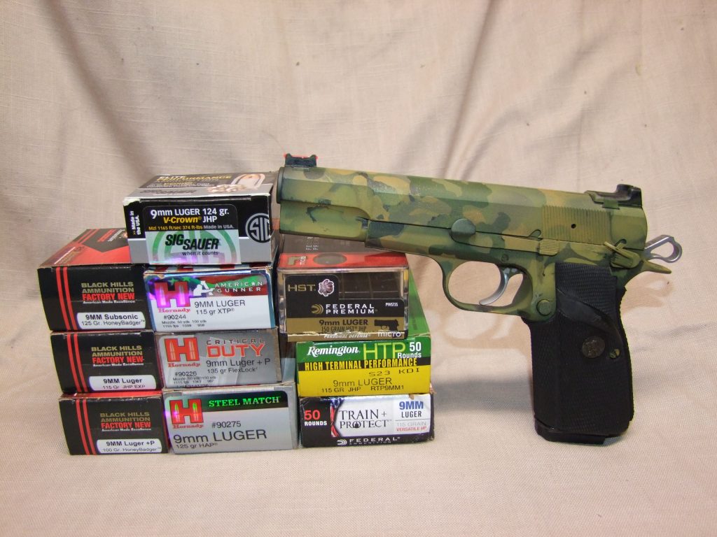 To thoroughly test the KGB Custom Hi-Power I used a mix of factory ammunition. From Black Hills I had their new 100 grain Honey Badger, 115 grain JHP EXP, and their proven 124 grain +P JHP. I chose Federal’s Tran & Protect 115 grain VHP and 150 grain HST. Hornady’s 115 grain XTP American Gunner, 135 grain FlexLock and 124 grain HAP were a good sampling of their line. I had one offering from Remington, the 115 grain HTP JHP. Finally I had Sig’s 124 grain V Crown JHPs. These loads are a good cross section of ammunition on the market today for range, competition and personal protection.