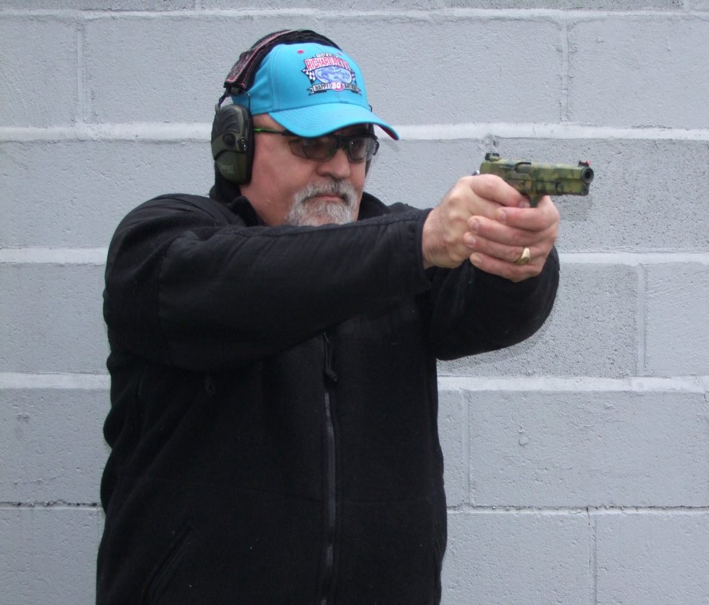Karl’s installation of the C&S hammer/sear, safety and hammer coupled with the beavertail made controlled pairs a breeze. The sharp clear sight picture of the Heinie Ledge with fiber optic front made picking up the sight fast and was easy to follow during recoil. This pistol was now ready for use in USPSA or IDPA.