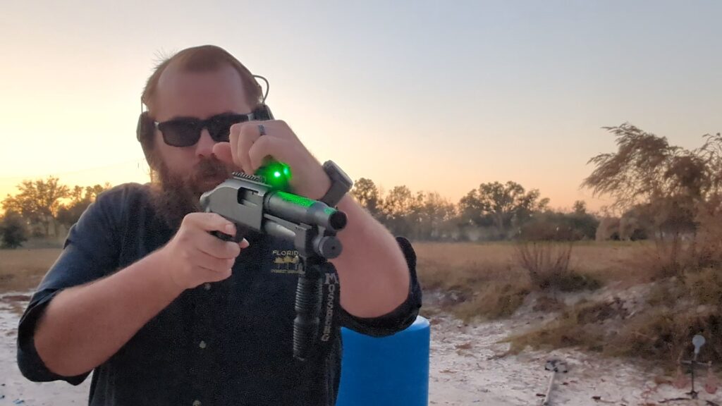 I’ve become the thing I hate. I remember when Shockwaves came out, and everyone was slapping a rail on the top and tossing a laser on it. My attitude was that if you’re going to use a rail, why not just use a red dot and aim the thing? Yet here I am, throwing a cheap Chinese-made Gmconn laser on the optic rail of a Mossberg 500.
