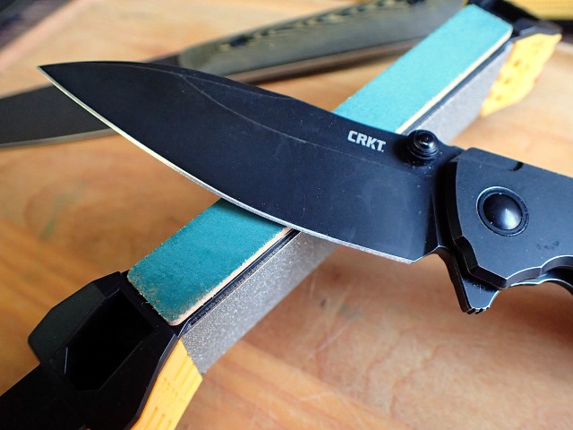 The diamond plates attach magnetically, so swapping them is quick and tool-free. Just lift a plate off, flip or replace it, and the magnets snap it back into place. This lets you change grits on the fly without fumbling in the field.