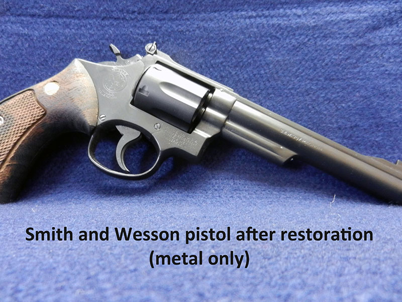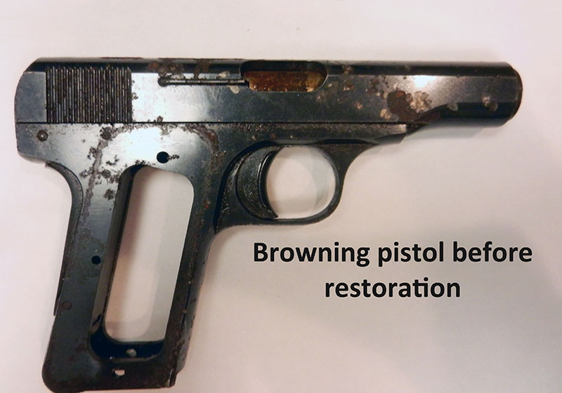 If the value of the gun is impacted by the condition, your next decision will be whether or not it needs improvement. This could range from a simple cleaning to repair, refinishing, or restoration. It is crucial to understand how each process would impact the value of your gun. If the gun has low intrinsic value, or if it has been mass-produced by modern manufacturing methods, your goal is likely going to be guided by your plans for the gun, it’s sentimental value, or how you want it to look. A good cleaning can do wonders for the look of a gun in this category. If you want to make it look new, or create a custom look, refinishing may be your best choice. During refinishing, the gun is disassembled and cleaned; the metal is polished and prepped. It’s vital that the metal preparation is done correctly to preserve the original nomenclature, serial number, proof marks, maintain sharp edges, and retain sharp screw and pin holes. The metal parts can be restored to their original factory finish via whatever process was being used at the time that it was manufactured. The wood would be stripped of its old finish; any cracks or nicks repaired or filled. The stock can be finished with a thin layer of polyurethane, or it can be coated and decorated with Cerakote, paints, and even hydrographic designs. Gold leaf, engraving, or checkering can be used to further customize your gun. Once reassembled, you should have a great looking gun that reflects your taste and will be protected against the ravages of time.