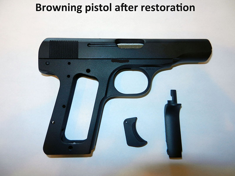 Obviously, great care should be taken when deciding what, if anything, should be done to your old gun. It is equally important to carefully choose who should help you achieve your goal. There are training programs for gunsmiths and armorers across the country; however, there is no governing body which dictates uniform standards for curriculum and requirements for certification. Also, there is no program that grants licenses or monitors performance. That makes it difficult to know who to trust. I recommend finding a gunsmith who has completed a lengthy apprenticeship under someone who could be considered a “Master” gunsmith, a title of respect earned from years and years of experience. This person would specialize in restorations and is willing to consult respected publications and museums when necessary. Ask for references, look at examples of past restoration work, and get a second opinion if needed. Ask them to tell you when it’s best to leave well enough alone, and why. If you take it to someone who is calling themselves a “licensed and certified gunsmith,” be wary, as once again, there is no licensing or certification requirements to be a gunsmith. My shop is willing to help anyone do research and arrive at a correct decision regarding any refinishing or restoration of your firearm. I’m hoping this information will help you to decide what to do, and who to trust with the job!