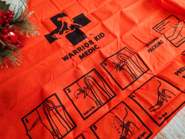 This isn’t your average bandana. Recently seen on Shark Tank, I got to meet the man behind it all at the Georgia Bushcraft Fall Gathering. Dustin Titzman designed the Warrior Kid Medic as a multi‑tool in fabric form. Sized at 36.6 x 36.6 x 53.9 inches, it doubles as a sling, tourniquet, dust mask, or signaling flag.