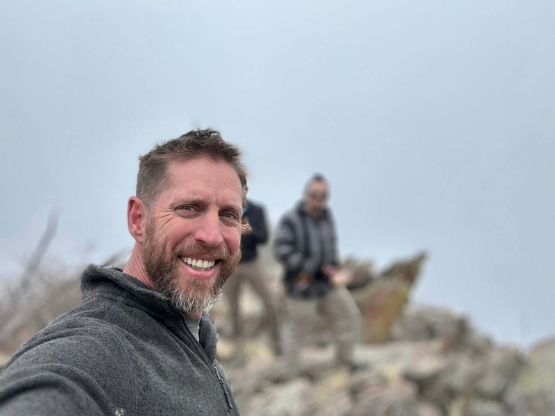 There we were, about 9,000 feet in elevation, with little visibility. Heck, we just shook hands for the first time a couple of days before. Yet there we were, Jason Marsteiner and I, atop this majestic mountain with Stryker the survival dog. We were waiting for Dustin (Wazoo Gear) and Jason Salyer (ON THREE) to get the rope rigged for their 100-foot descent. Then, the clouds slowly faded and reminded us where we were!