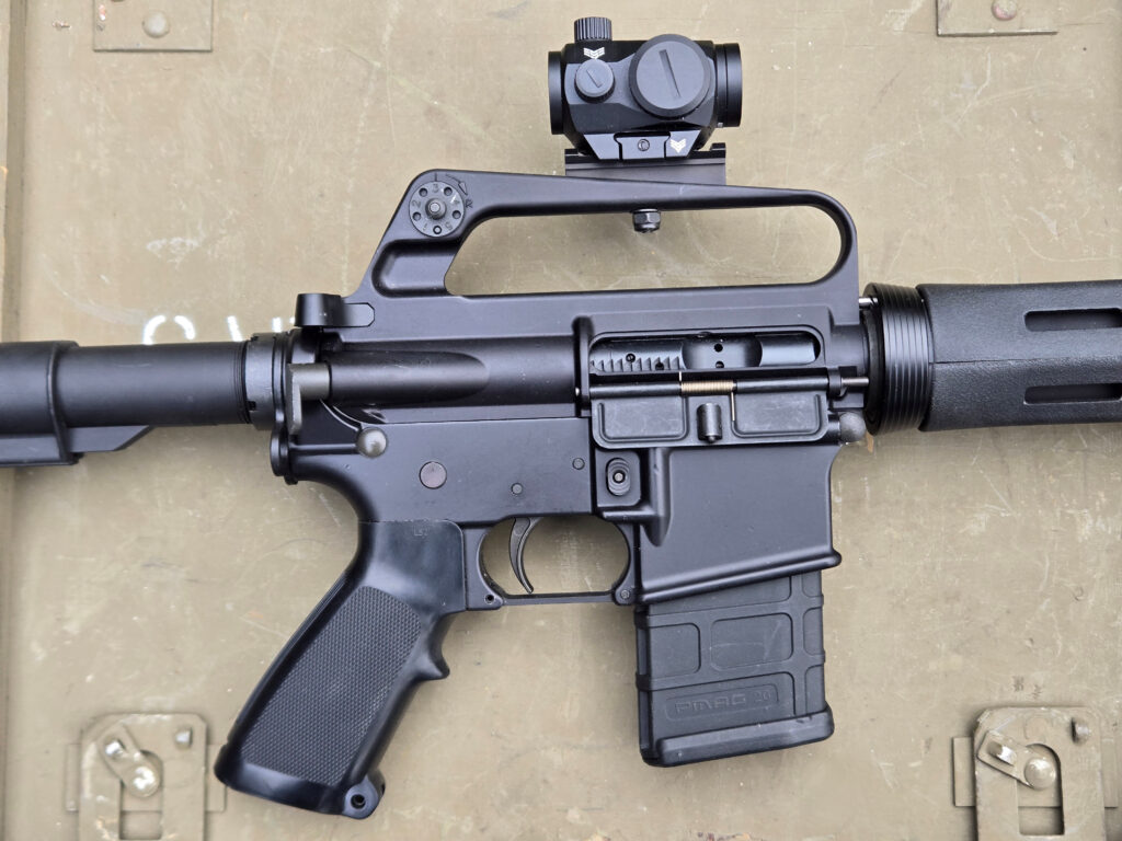 The KE Arms Picatinny Rail Carry Handle Mount is a great optics mounting option for your retro AR. It’s light and compact, and mounts securely. It has just enough rail space to be practical without anything extra. While it will certainly work on any carry handle rifle or carbine, I find it especially fitting for a simple, stripped-down build.