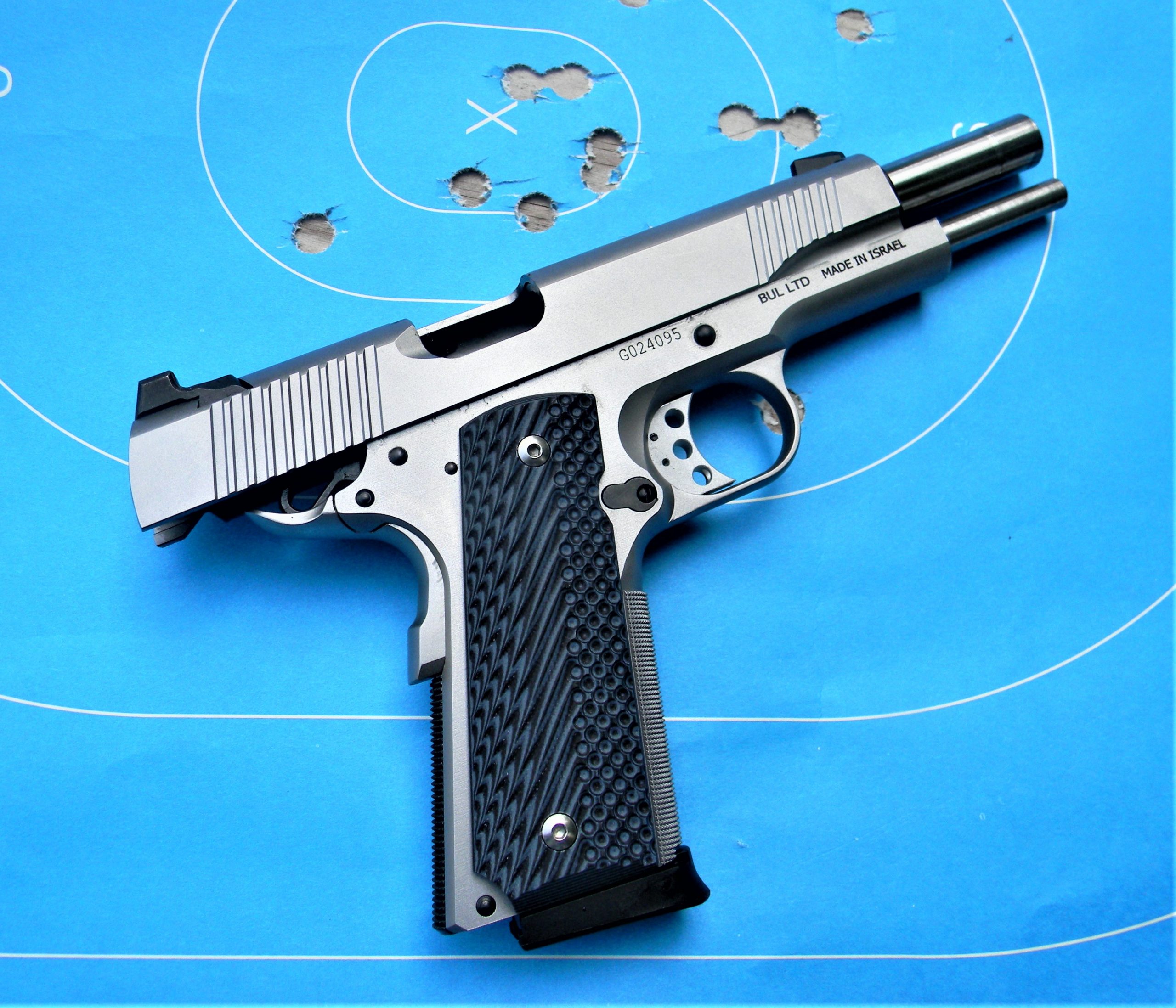 The proof of the pistol is in the firing. I collected a good mix of popular ammunition, handloads, and a stack of Wilson Combat magazines. I could not identify the single magazine supplied with the Bul manufactured Magnum Research pistol. Most makers use the excellent MecGar, this may be a Bul product. During the evaluation the most common load was a hard cast lead SWC at 850 fps, I also used a hardball standard 230 grain RNL at 820 fps. From the beginning of the test there were no failures of the pistol to feed, chamber, fire or eject.