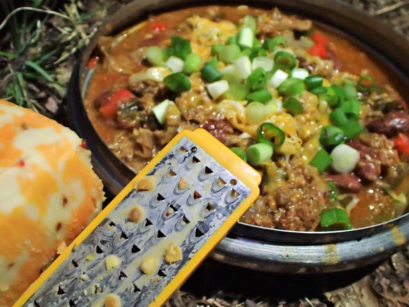 Making Deer Chili fills the woods with a smell that wakes anything still sleeping. When the pot thickens and the flavors settle, bowls get filled. Three‑pepper chipotle cheese melts across the top. Green onions finish the job. The only thing better than a hot bowl under cold mountain air is the next day’s batch, when everything deepens, and the pot hits even harder.