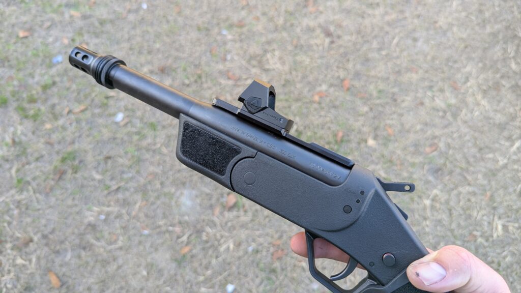 However, if you only look at shotguns, you lack creativity. I was able to mount the Grimlock to the Henry Homesteader, which shows it works with Henry rail footprints. I also mounted the direct-mount RMSc option to my Rossi Brawler in .300 Blackout without a problem.