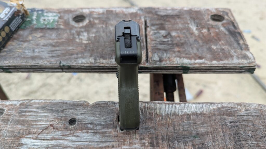 I don’t need a rail, and think adding a Picatinny rail would unnecessarily widen the gun. I don’t need a light with this gun. The light recoiling .32 ACP makes it easy to shoot one-handed while using a handheld light.