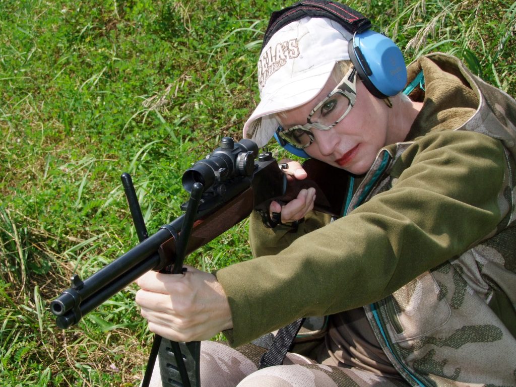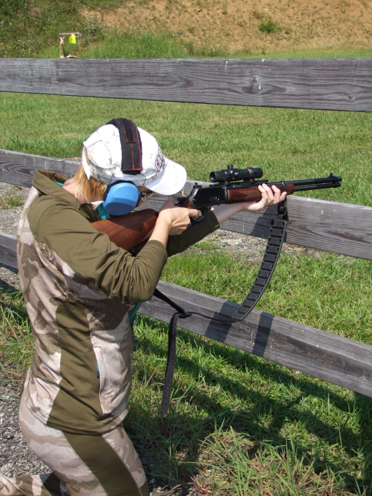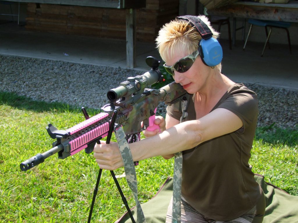 Kneeling and seated positions have been used by hunters and armed professionals since the dawn of shooting. The key to making these stable positions is to have the fleshy muscle of the triceps/bicep resting on the inside or outside of the knees. You can see in the accompanying photos how LLP has positioned herself. If you place your elbow directly on the knee, you will slip. Two hard objects are not stable; the belly of the muscle acts as a shock absorber against natural movements such as breathing. In the photos you will notice she also has looped her hand through the rifle sling. If you are sitting in front of a tree, use it to further stabilize your position. Combining a sling and proper positioning; kneeling and seated shooting positions are nearly as stable as the prone position.