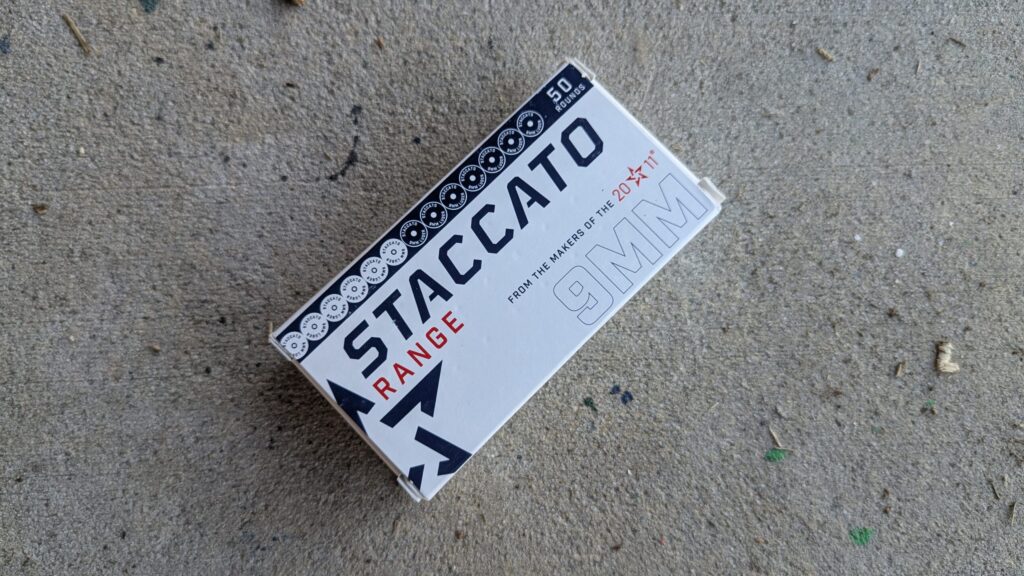 The most measurable difference is accuracy. To keep the test fair, I used a Staccato HD—the most accurate handgun I own. The optic was zeroed for the pricier Staccato ammo, so I didn’t penalize the cheaper rounds for missing the bullseye; I was looking strictly for group consistency.