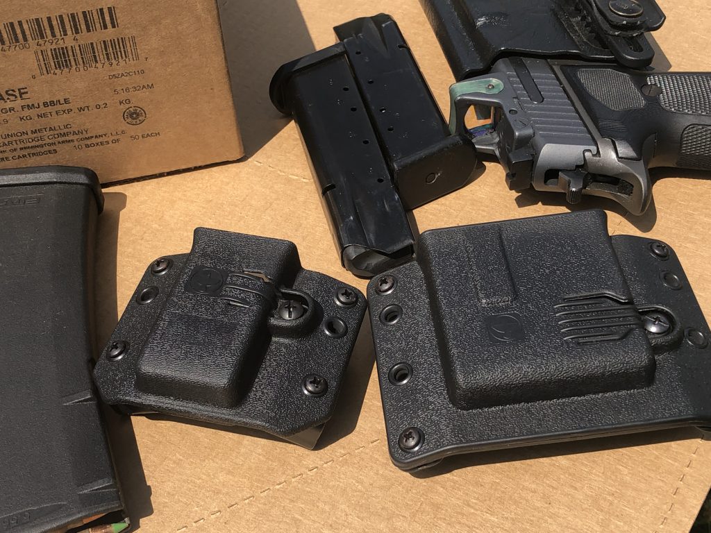 This is where the Copia’s come in handy. Fitting to the body, allowing more ammo to comfortably come with you means more reps or more convenient ammo on hand in a time is life situation. More reps better engrains the skill development. More ammo allows more chances to solve the life threatening situation which prompted grabbing the gun. Less pieces, lower cost, easier to grab, all lend themselves to the convenience factor which ups the odds of you bringing it.