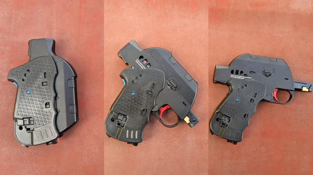 The Ounce may have been announced three years ago, but it’s only now arriving on the market. This gun is truly out of this world and would be perfect in Firefly. The Ounce is a .22LR semi-automatic pistol that uses a locked breech, which is so rare for .22LRs that I think it might be the first to do so.