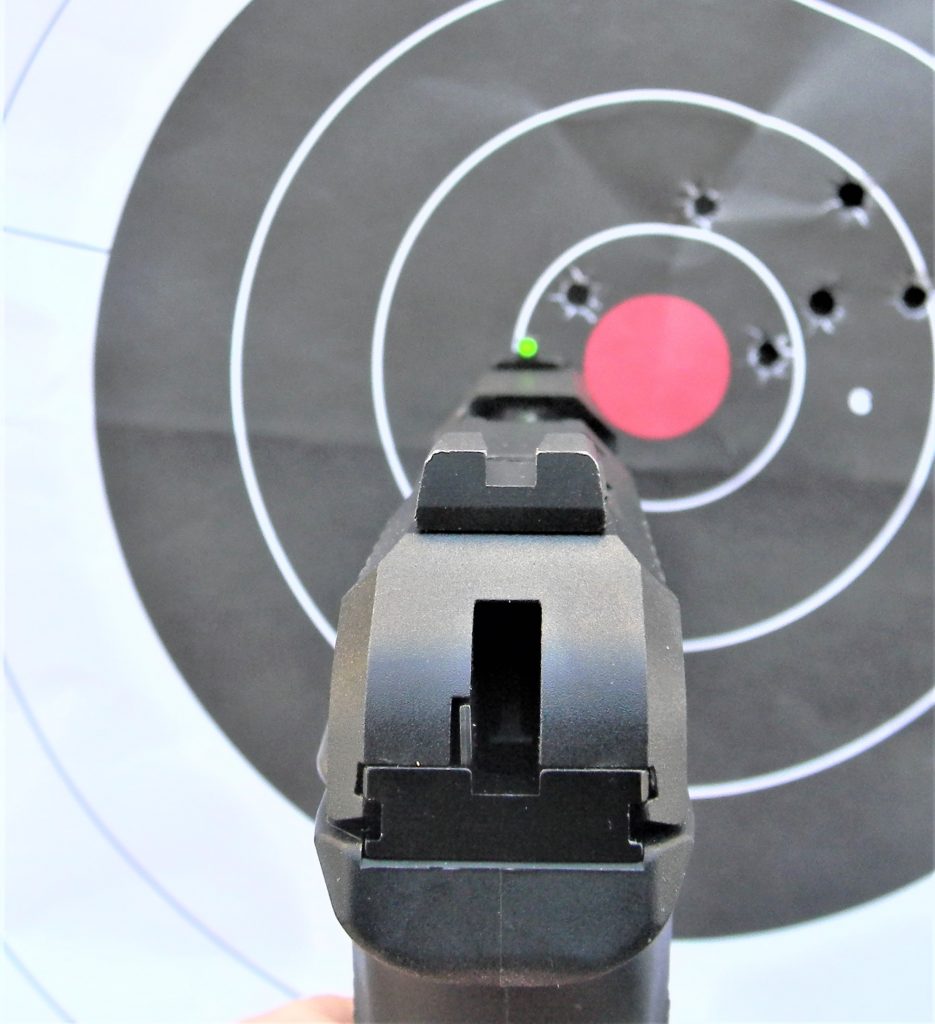 A full size slide and .380 ACP strength recoil spring are easier to handle than most. This pistol also features excellent combat sights with bright fiber optic front sights, and the rear sight is well designed with a wide notch. The frame features a light rail for mounting a combat light, and with the handle fits most hands well. The fixed barrel on it may increase accuracy as well. Like many modern handguns the security 380 is a polymer frame handgun. The action is a hammer fired double action only. It also requires less effort than fully cocking the hammer because when the slide is racked back it leaves the hammer partially cocked. The trigger action is very smooth and controllable, while the slide lock and safety are very easily manipulated. This all makes it very similar to the Security 9 9mm caliber Ruger pistol. But the .380 does differ in these important particulars. The 380 isn’t any more accurate than the Security 9 in my opinion, however, it is easy to use well.