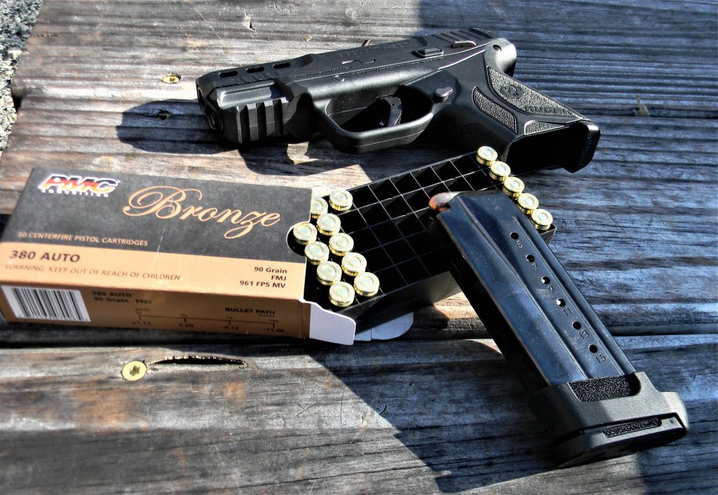 The magazines supplied with the 380 are a contrast to many of the modern 9mm sub compact high capacity magazines. It is supplied with two steel magazines, one is a ten round flush fit magazine. While the other is an extended fifteen round magazine. The extended magazine features a filler that takes up the space between the grip frame and magazine base. This pistol fits most hands well and the recoil is modest. Recoil control is excellent, the recoil is much lighter than a 9mm handgun and also lighter and smaller than most .380 ACP handguns. I began shooting with FMJ ammunition including PMC and Winchester types. The magazines were also easily loaded to full capacity.