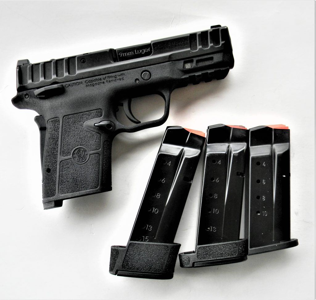 The magazine springs are stiff. That is a good thing as the magazine must feed a long column of cartridges from full compression to almost no compression. A supplied UP Lula loader gave me an edge when loading these magazines. I loaded the ten round magazine by hand and usually loaded only fourteen cartridges in the fifteen round magazine. The supplied Uplula magazine loader made a tremendous difference in ease of loading. The Equalizer was tested with a wide range of bullet weights. Lightest was 92 grain Fiocchi and the heaviest 150 grain Federal. All functioned well. The Equalizer never failed to feed, chamber, fire or eject with the ten and thirteen round magazines. I had a couple of short cycles with the fifteen round magazine. Maybe a break in malfunction? The Equalizer is fast on target and the trigger while not target grade offers a clean reset. Like many Smith & Wesson handguns the Equalizer pistol is designed with a good grip angle providing a natural point.