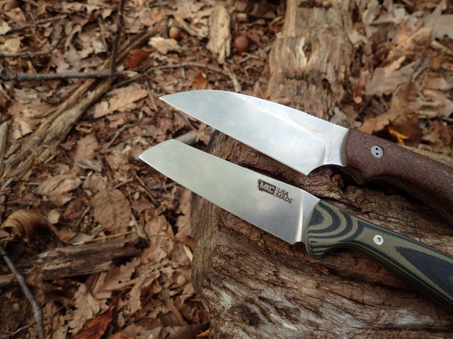 I can’t think of a box-cutting knife in a warehouse or store that wasn’t straight. However, I’m a fan of whatever works. Sheepsfoot and Wharncliffe-style blades are natural box cutters on steroids. By pressing your index finger against the spine near the tip, you can control the depth of the cut. Much like the sliding lever on a box cutter adjusts the blade depth.
