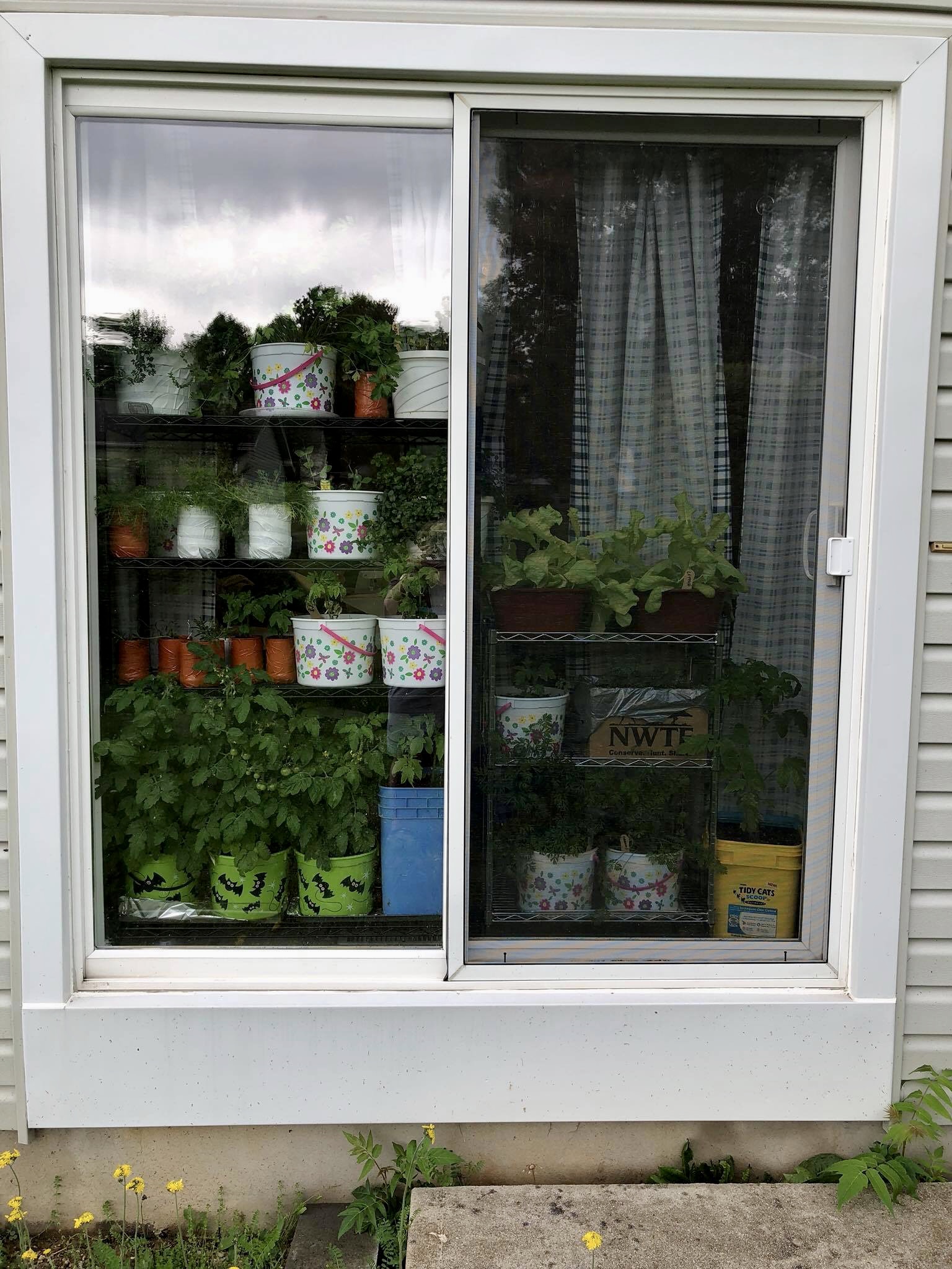 The big requirement for a window garden is a bright south-facing window – or three. Obviously in a collapse situation like the next Great Depression, you may not have electricity to run “grow lights”. But you don’t need them if the orientation of your home is right. I am lucky to have a large south-facing patio slider. Since I don’t use the slider much to go in and out, I’ve got most of two large ceiling-to-floor windows to work with.