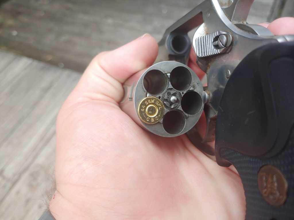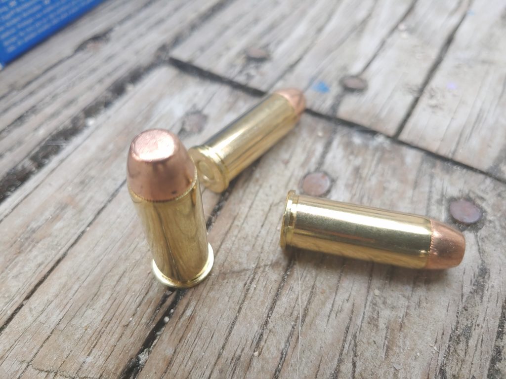 This fourty-four shares the same relationship with the .44 Magnum as the .38 Special does with the .357 Magnum. If you own a .44 Magnum, you can drop a .44 Special in it and safely shoot the cartridge. It tends to be lighter recoiling but doesn’t seem to be much cheaper than standard .44 Magnum food.