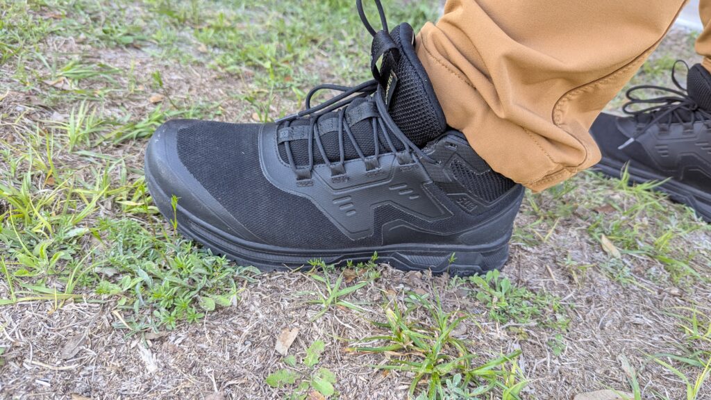Too many boots integrate bright and weird color patterns that don’t work for professional wear. Too many mid-height boots are made for hikers and not for people who wear boots to work. That’s not the case here. The plain black look isn’t flashy, and I’m thankful for it.