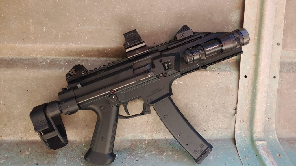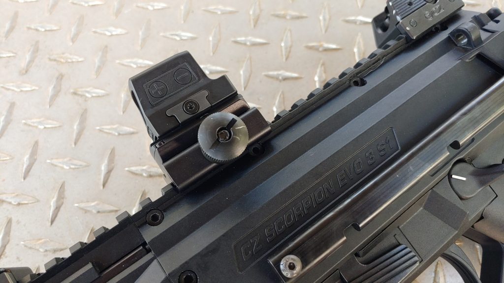 My 509T has been living life on my CZ Scorpion. With ammo prices being what they are, 9mm seems to be the responsible ammo to practice with. It’s also what I have a large stash of and fits the close-range use of an optic this size. The RMR mounting footprint made finding a mount easy enough. I went with a Trijicon mount, and it was the perfect height for comfortable use.