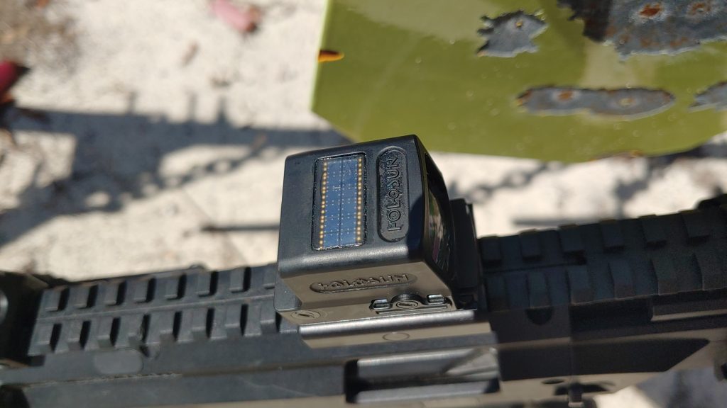 Finally, the 509T incorporates a solar backup for the battery. This little panel gives you some extra power if the battery dies in your optic.