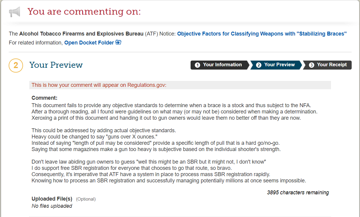 Be sure to reference ATF 2020R-10 to properly attribute the comment to the Braced Firearm proposed rule change.