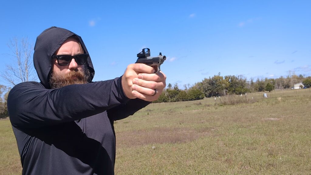 If you’ve ever put an optic on a revolver, you know they sit high; that’s the case here. As such, you might need a shim or a lot of elevation adjustment. I used a Shield RMSc, and while it makes the gun even bigger, I didn’t mind since this is already a “big” pocket pistol.