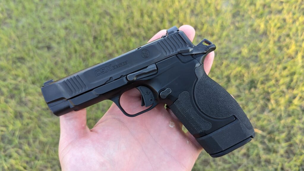 I’m not a big M1911 fan. Sure, they are fun and historic, but their high weight-to-low-capacity ratio makes them a fun gun to me. That doesn’t mean I can’t appreciate a more modern take on the M1911’s strengths. The S&W CSX is essentially a mini-1911, but it doesn’t have the capacity problem. The S&W CSX is a micro-compact that uses SIG P365-inspired stacked and a half magazines.