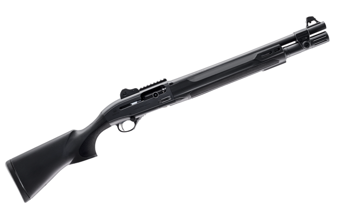 The Benelli M4 gives us a system that can handle a wide swath of rounds, induing low recoil buckshot and even the oddball 2.5-inch loads from Nobel Sport. The Benelli M4 has solid ergonomics but is dated compared to today’s modern shotguns. It’s also fairly expensive and comes from Pizza-land with a neutered five-round tube and fixed stock.