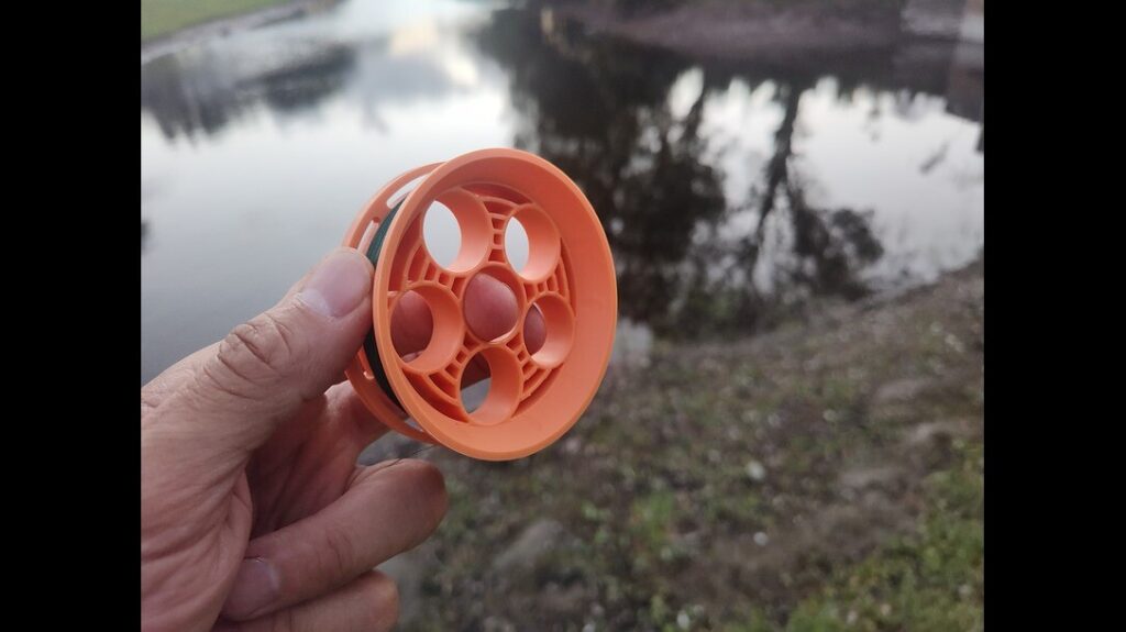 I positioned my index finger into the center hole and my middle finger into the hole next to it. My thumb pressed against the line, which held it in place until I was ready to cast. With my free hand, I tossed the line into the water. It released from the GoReel smoothly and without any resistance. The GoReel rotated around my index finger when I needed to pull out more line.