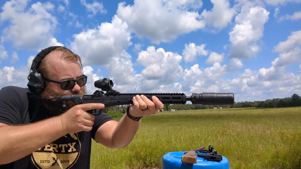 I do enjoy the almost zero recoil and reliability of a centerfire cartridge. It’s capable of being fired quickly with awesome control. Sub-2-second low-ready Bill drills are the norm. If you needed a low-cost, low-recoil personal defense weapon, this would be an excellent choice. Ditch the prism for a red dot, and it’s a handy home defense weapon.