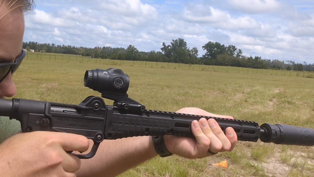 The SUB 2000 series of folding rifles was always neat, but the folded design prohibited the use of optics. You could mount one, but you couldn’t fold the gun. This created a niche group of optics mounts from companies like MCARBO. A few years back, KelTec released the integrally suppressed CQB variant and introduced a new rotating rail.