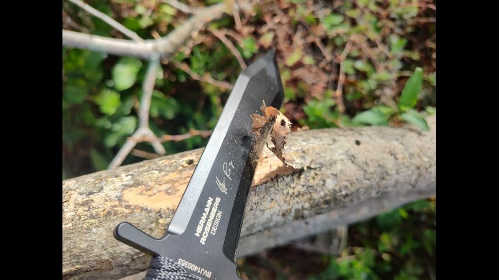 I’ll keep going back to the tang construction and paracord wrapped handle during my testing. They both allowed me to apply full force and have complete control over the knife within my hand.
