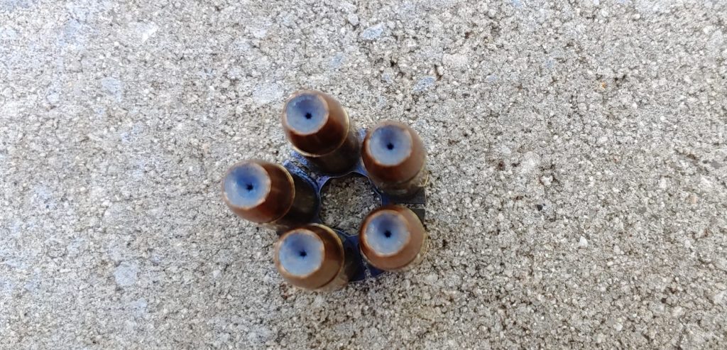 Revolver rounds feature a good strong crimp to withstand this force. 9mm rounds do not. This is not common and seems to only occur when you use heavier projectiles that generate more recoil. I’ve only had it happen once with a 147-grain JHP from Winchester. With 124 grain +P JHPs and 115-grain JHPs, it never occurred, and the same goes for any standard FMJ load.